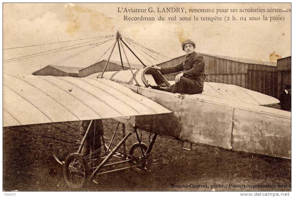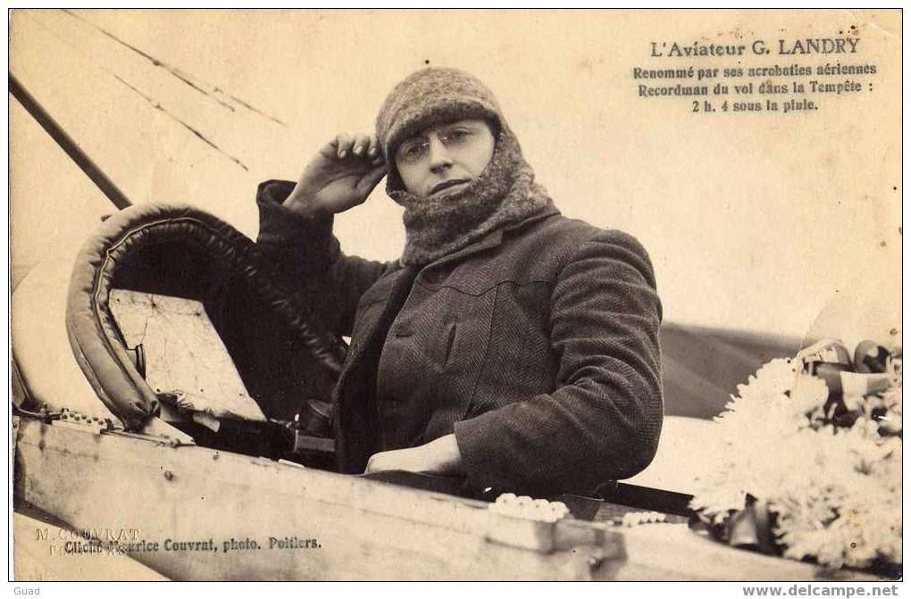 L'aviateur Gilbert Landry 1891-1915 L'aviateur Gilbert Landry, renommé pour ses acrobaties aériennes et recordman du vol sous la tempête.