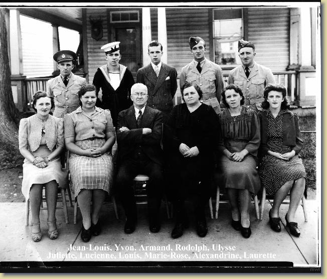 Louis et sa famille devant le 119 boulevard Saint-Joseph à Hull en 1945.