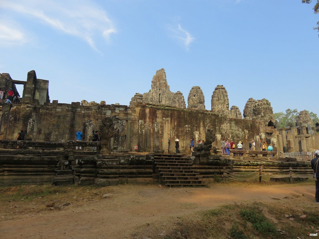 mardi, 9 février 2016, 9 h 3 | Prasat Bayon | Ville: Siem Reap | Angkor | Cambodge | Angkor Thom est la cité royale construite par Jayavarman VII (qui régna probablement de 1181 à 1220), roi bouddhiste de l'Empire khmer, à la fin du xiie siècle et au début du xiiie siècle, après la conquête et la destruction d'Angkor par les Chams. Son nom actuel, Angkor Thom, signifie - la grande cité - ; son nom sanskrit était Mahanagara. Elle est le témoin de la grandeur de l'empire. Wikipédia. | GPS: 13°26'27.46" N | 103°51'34.75" E | © Marcel Walter Landry | Fichier: IMG_2547.JPG
