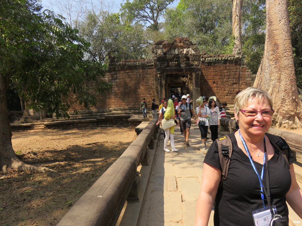 mardi, 9 février 2016, 11 h 3 | Ville: Siem Reap | Angkor | Cambodge | Ta Prohm qui fût le plus vaste temple dAngkor, aujourdhui livré à la jungle. Les conservateurs lont laissé intact, permettant ainsi aux visiteurs actuels den ressentir le mystère. Situé un kilomètre à l'est d'Angkor Thom, sur le bord sud du baray oriental, il a été construit sous le règne de Jayavarman VII comme monastère et université bouddhique Mahayana sous le nom Rajavihara (le monastère du roi). Jayavarman VII est le seul roi khmer à avoir édifié deux grands temples. Le premier des deux, Ta Prohm fut consacré en 1186 et dédié à la famille du roi : l'idole principale (Prajnaparamita, la personnification de la sagesse) a pris modèle sur sa mère, tandis que les deux temples satellites de la troisième enceinte étaient consacrés l'un à son guru (nord) et l'autre à son frère aîné (sud). Wikipédia. | GPS: 13°26'5.39" N | 103°53'18.43" E | © Marcel Walter Landry | Fichier: IMG_2618.JPG