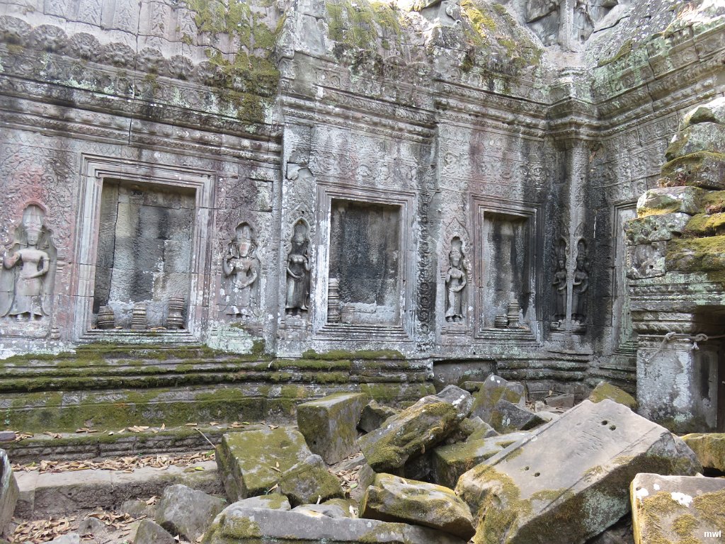 mardi, 9 février 2016, 11 h 34 | Ville: Siem Reap | Angkor | Cambodge | Ta Prohm qui fût le plus vaste temple dAngkor, aujourdhui livré à la jungle. Les conservateurs lont laissé intact, permettant ainsi aux visiteurs actuels den ressentir le mystère. Situé un kilomètre à l'est d'Angkor Thom, sur le bord sud du baray oriental, il a été construit sous le règne de Jayavarman VII comme monastère et université bouddhique Mahayana sous le nom Rajavihara (le monastère du roi). Jayavarman VII est le seul roi khmer à avoir édifié deux grands temples. Le premier des deux, Ta Prohm fut consacré en 1186 et dédié à la famille du roi : l'idole principale (Prajnaparamita, la personnification de la sagesse) a pris modèle sur sa mère, tandis que les deux temples satellites de la troisième enceinte étaient consacrés l'un à son guru (nord) et l'autre à son frère aîné (sud). Wikipédia. | © Marcel Walter Landry | Fichier: IMG_2630.JPG