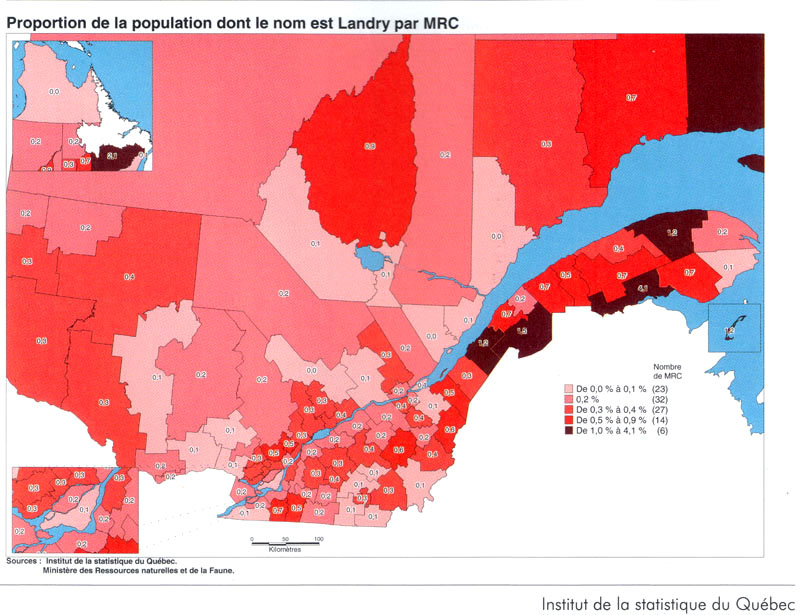 (2) Pourcentage du patronyme Landry par rapport à l'ensemble de la population de