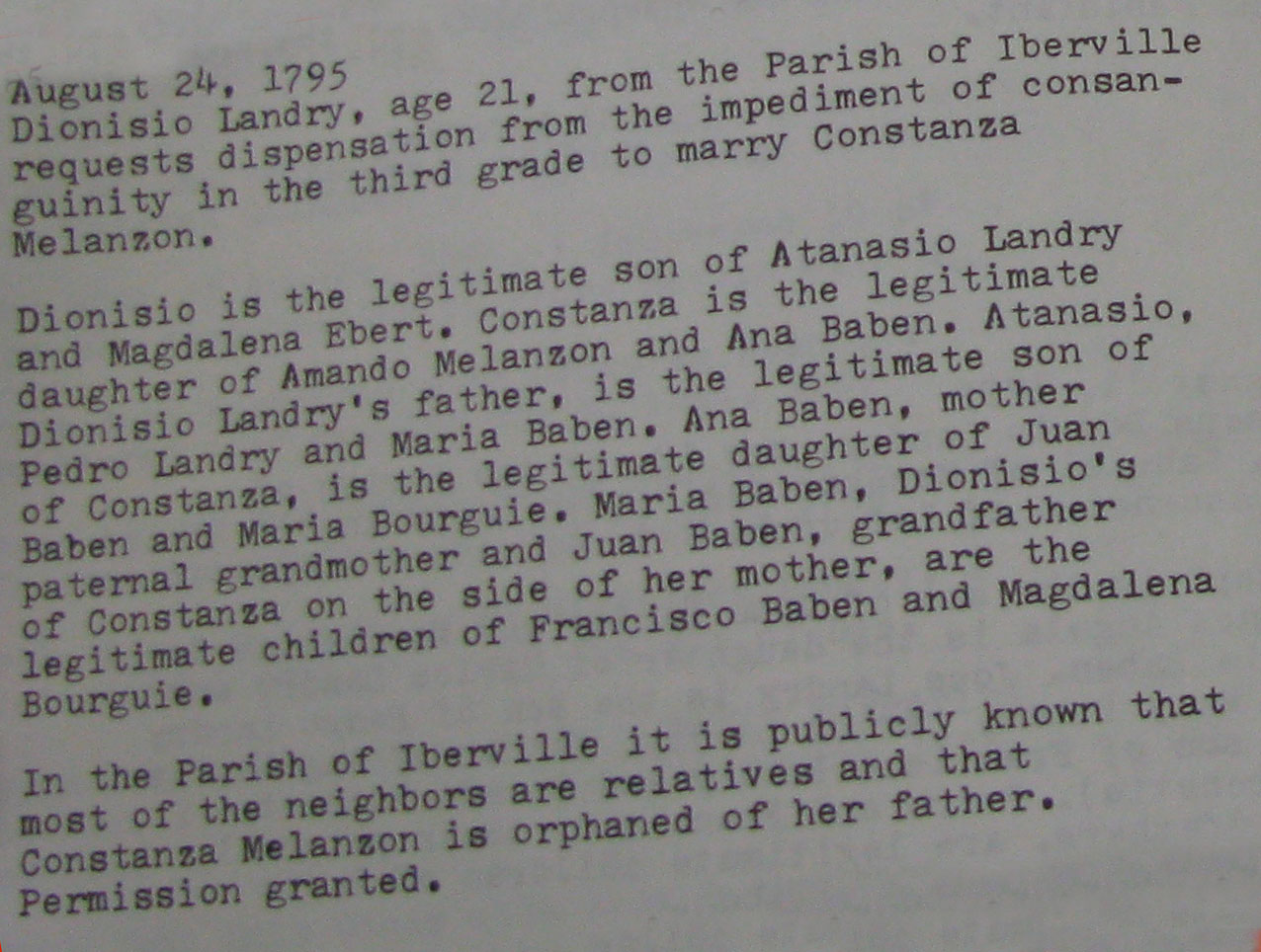Shirley Chaisson Bourquard, Marriage dispensations in the