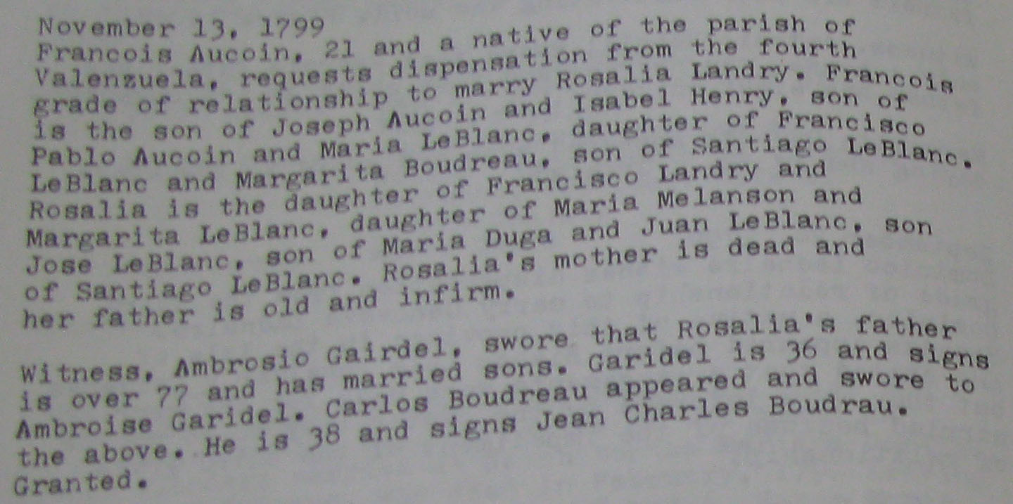 Shirley Chaisson Bourquard, Marriage dispensations in the
