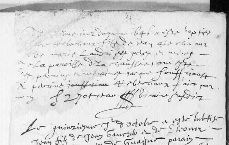 Baptême le 28 fév 1601 à Roiffé de Pierre