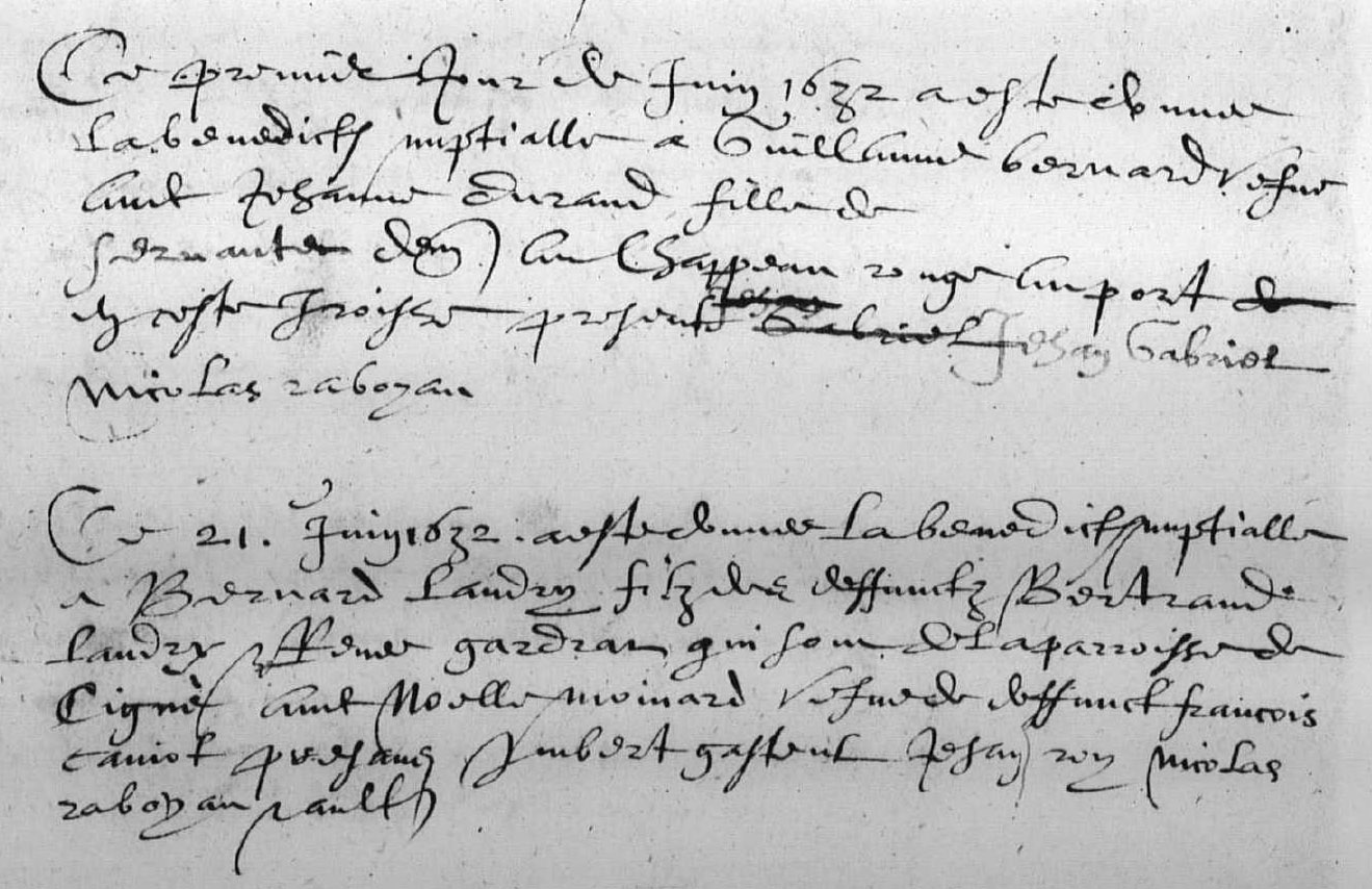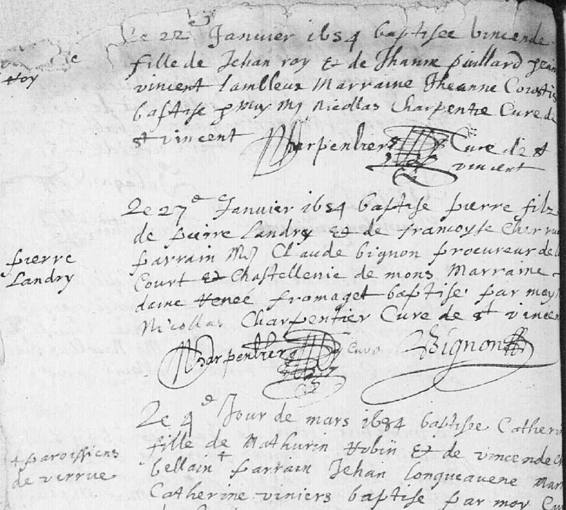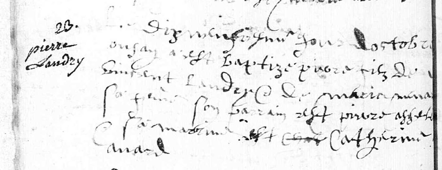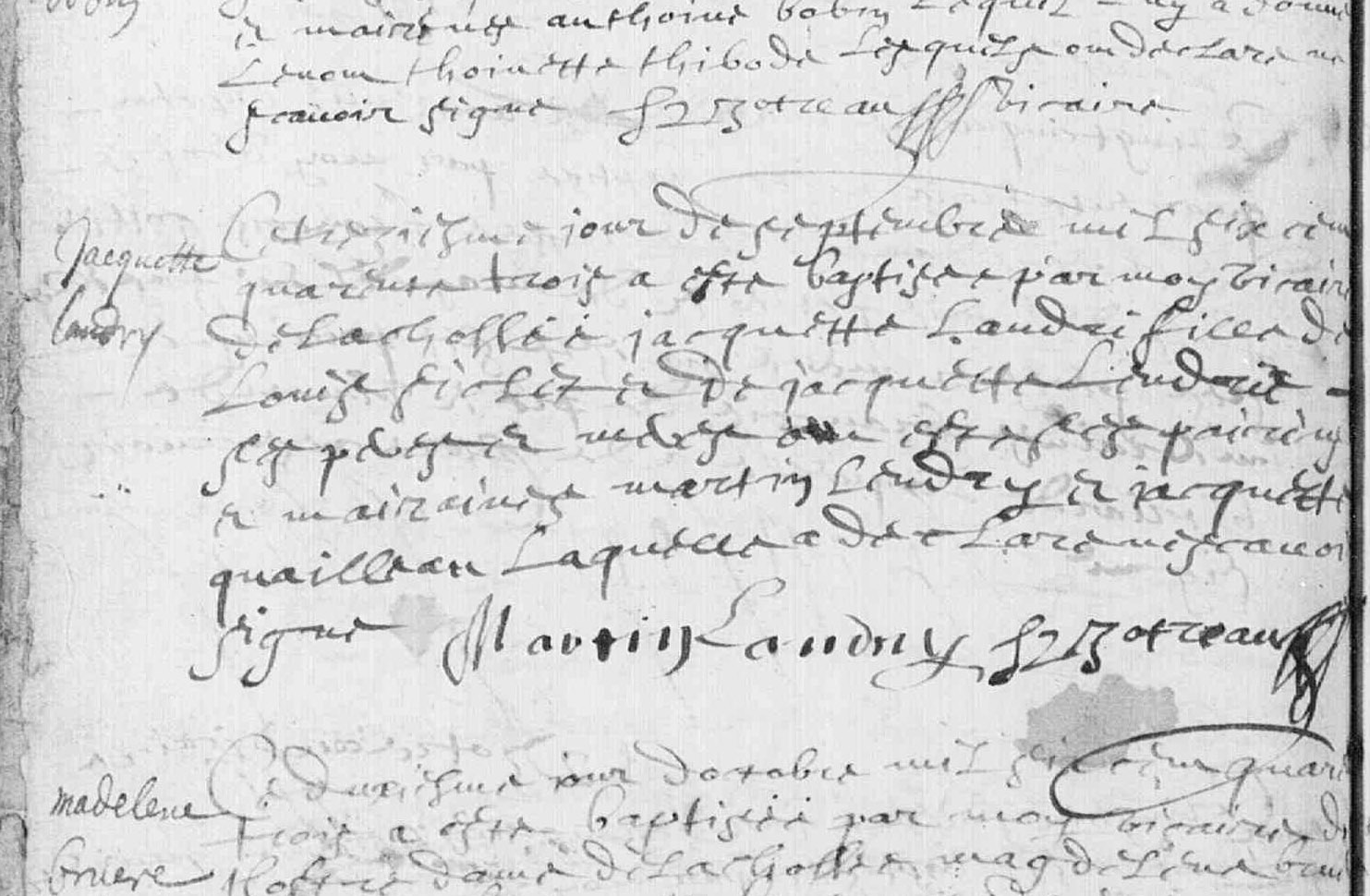 Landry (M ). Parents: Nicolas / Jeanne Moynet Mainet |