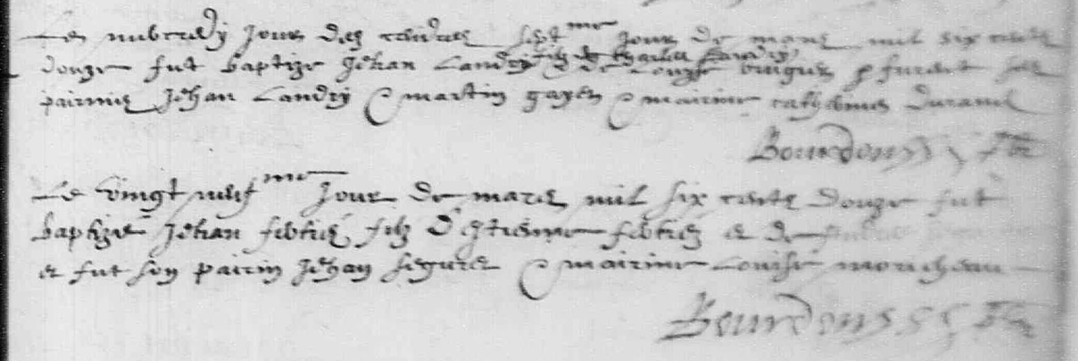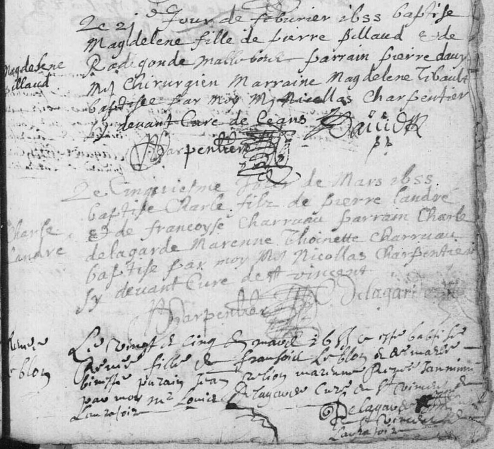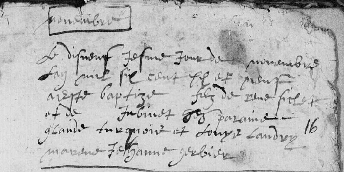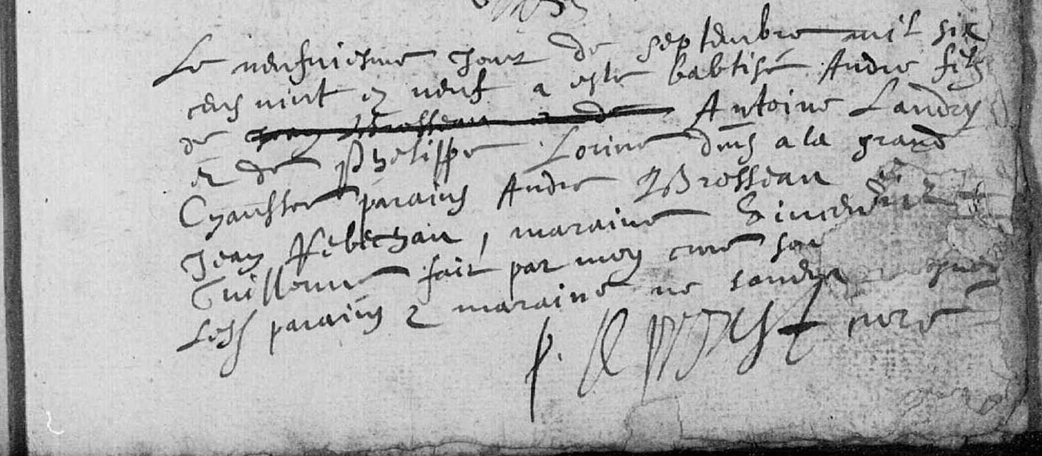 Landry (M ). Parents: Nicolas / Jeanne Moynet Mainet |