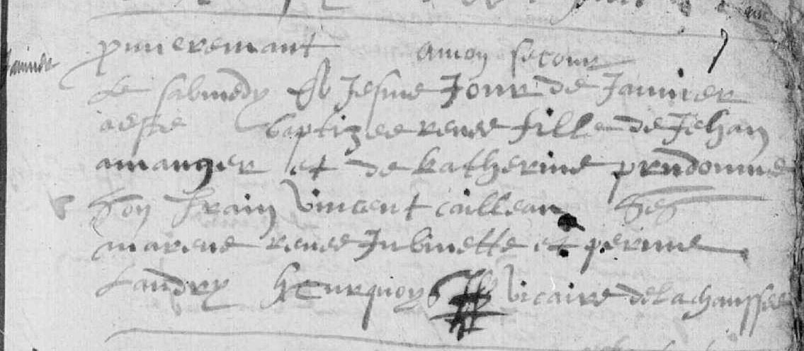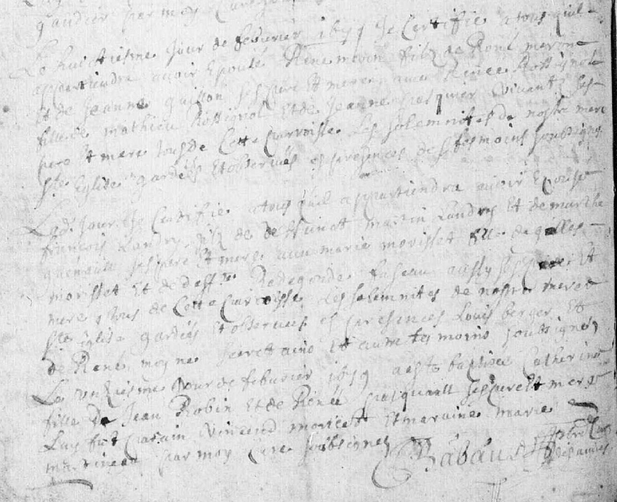 Baptême le 22 fév 1601 à Roiffé de Perrine