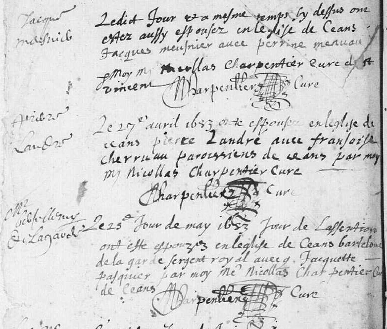 Mariage le 25 mai 1700 à Monts-sur-Guesnes, (St-Vincent-de-l'Oratoire) de