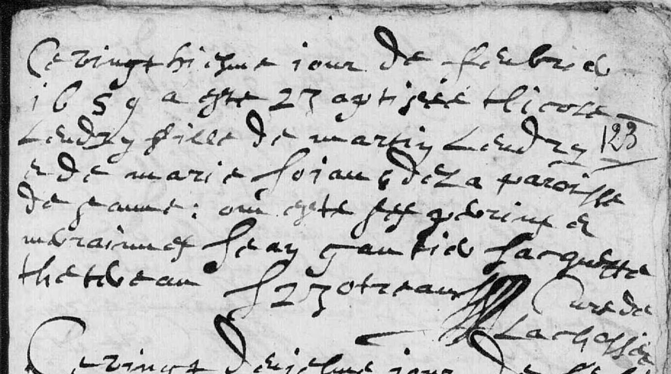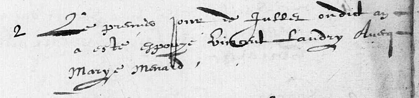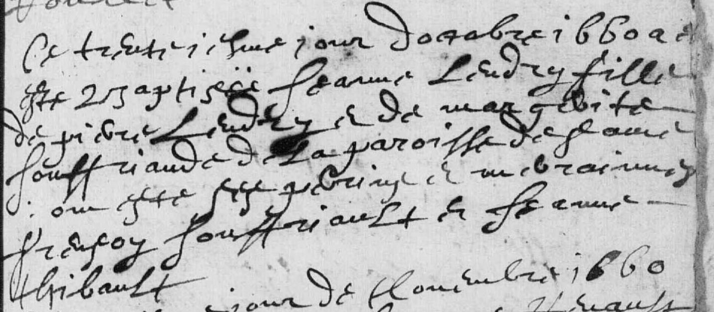 Jehanne Landry fille de Thomas Landry, maître couturier et Magdelaine Blouin. |