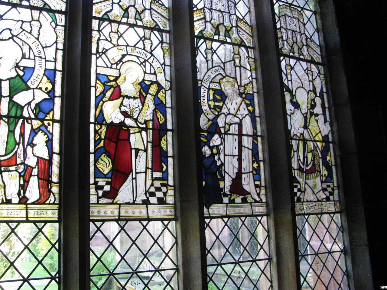 dimanche, 24 juillet 2011, 13h50 | Chester cathedral | Ville: Chester | Pays de Galles | Chester Cathedral - The 13th-century Norman cathedral was originally an abbey church. Chester was raised to cathedral status following Henry VIII's dissolution of the monasteries in 1550. The interior boasts superb carved wooden choir stalls. Handel gave his first public performance of The Messiah here in 1742. | © Marcel Walter Landry | Fichier: IMG_9093.JPG