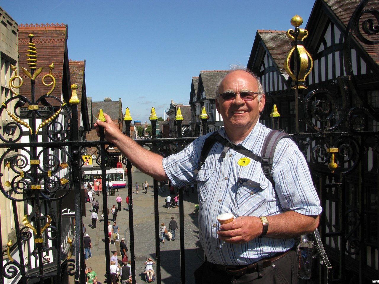 dimanche, 24 juillet 2011, 15h29 | Eastgate Clock à l'entrée du vieux Chester | Ville: Chester | Pays de Galles | Eastgate Clock - After Big Ben, this Victorian clock tower is the most photographed timepiece in the United Kingdom. The clock rests in an elaborate wrought iron frame. | GPS: 53°11'27.10" N | 2°53'19.30" W | © Marcel Walter Landry | Fichier: IMG_9107.JPG