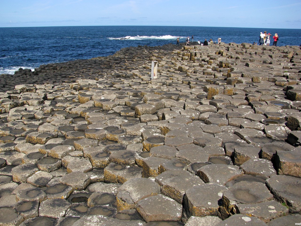vendredi, 22 juillet 2011, 12h08 | Giants causeway - La Chaussée du Géant | Ville: Giants Causeway | Irlande du Nord | Giant's Causeway. Renowned for its polygonal columns of layered basalt, the Causeway is considered the Eighth Wonder of the World, and is the only World Heritage Site in Northern Ireland. According to myth, the giant Finn McCool used the basalt columns forming the causeway as stepping stones to travel from Ireland to Scotland to visit his lover, a Scots giantess. Scientists, however, believe the mainly hexagonal columns resulted from cooling lava flows. Since it was first documented in 1693, the Causeway Coast has been the subject of much controversy concerning the origins of the earth. | GPS: 55°14'27.17" N | 6°30'42.08" W | © Marcel Walter Landry | Fichier: IMG_8880.JPG