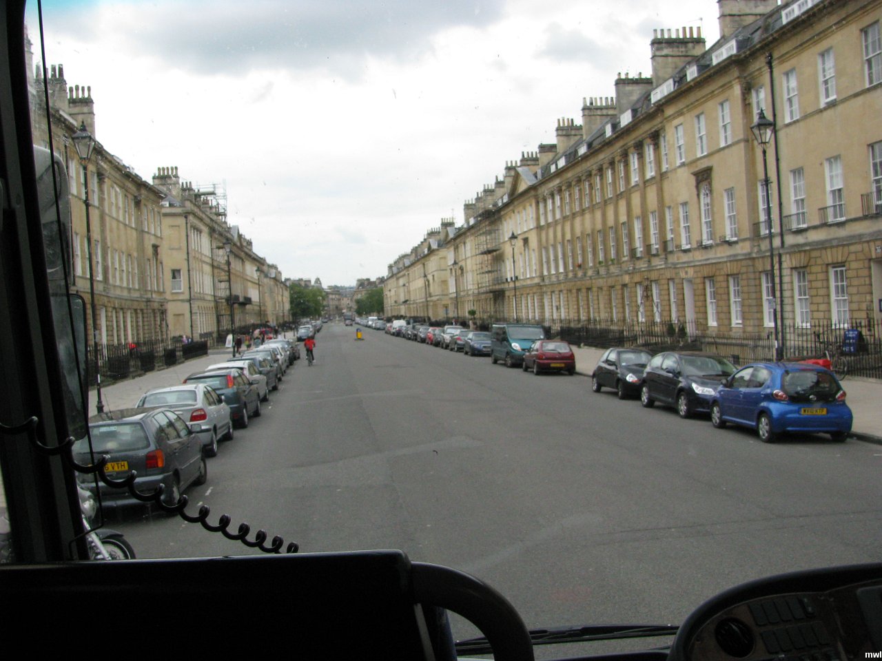 mercredi, 13 juillet 2011, 12h22 | Arrivée à Bath | Ville: Stonehenge Bath Startford-upon-A | Angleterre | En 43 av. J.-C, les Romains fondèrent la ville pour en faire un lieu thermal et s'appelait en latin Aquae Sulis ("les eaux de Sulis"). Cependant, la tradition orale semble suggérer que Bath était connue avant cette date. Ils construisirent des bains et un temple dans les collines aux alentours de la ville, dans la vallée de l'Avon autour de sources chaudes. Edgar d'Angleterre fut proclamé roi à l'abbaye de Bath en 973. Bien plus tard, la ville devint populaire en tant que station thermale pendant l'époque georgienne, qui conduit à une importante expansion laissant un incroyable héritage architectural fabriqué avec la pierre de la région. Source: Wiki. | GPS: 51°23'7.37" N | 2°21'6.93" W | © Marcel Walter Landry | Fichier: IMG_8143.JPG