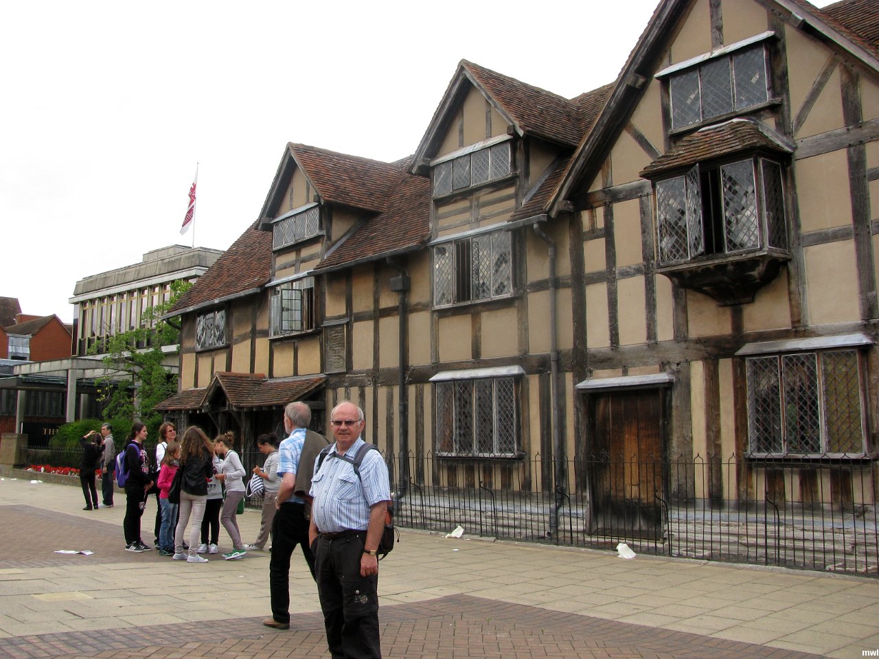 mercredi, 13 juillet 2011, 17h23 | La maison de William Shakespeare | Ville: Startford-upon-Avon | Angleterre | Stratford-upon-Avon est une ville du centre de l'Angleterre où William Shakespeare est né en 1564. Il y revint en 1611, assez riche et célèbre pour s'offrir des armoiries et passa les dernières années de sa vie dans sa maison de New Place. Décédé dans cette ville en 1616. | GPS: 52°11'37.74" N | 1°42'29.39" W | © Marcel Walter Landry | Fichier: IMG_8220.JPG