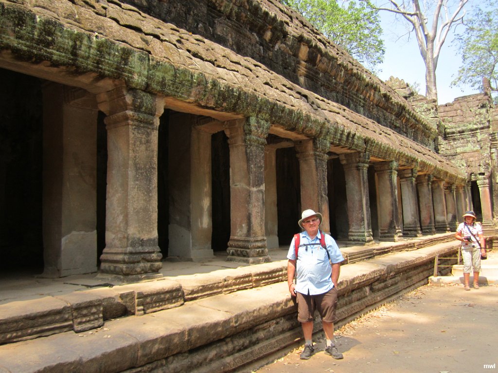 mardi, 9 février 2016, 11 h 53 | Ville: Siem Reap | Angkor | Cambodge | Ta Prohm qui fût le plus vaste temple dAngkor, aujourdhui livré à la jungle. Les conservateurs lont laissé intact, permettant ainsi aux visiteurs actuels den ressentir le mystère. Situé un kilomètre à l'est d'Angkor Thom, sur le bord sud du baray oriental, il a été construit sous le règne de Jayavarman VII comme monastère et université bouddhique Mahayana sous le nom Rajavihara (le monastère du roi). Jayavarman VII est le seul roi khmer à avoir édifié deux grands temples. Le premier des deux, Ta Prohm fut consacré en 1186 et dédié à la famille du roi : l'idole principale (Prajnaparamita, la personnification de la sagesse) a pris modèle sur sa mère, tandis que les deux temples satellites de la troisième enceinte étaient consacrés l'un à son guru (nord) et l'autre à son frère aîné (sud). Wikipédia. | GPS: 13°26'4.16" N | 103°53'23.47" E | © Cécile Brousseau | Fichier: CB_IMG_0629.JPG