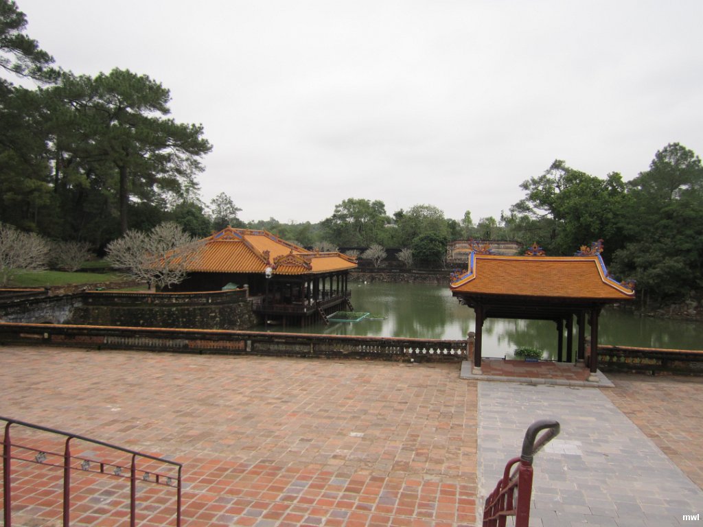 mercredi, 27 janvier 2016, 10 h 16 | Ville: Hue | Découverte de l'histoire impériale. Tombeau de l'empereur Tu Duc. Celui-ci fait partie d'un ensemble de constructions réalisées entre 1864 et 1867 suivant les plans de l'empereur lui-même. L'empereur Tu Duc vivait dans le luxe auprès de ses 104 épouses. Au milieu du lac se trouve un petit pavillon construit sur pilotis, dans lequel l'empereur aimait venir se reposer en charmante compagnie. | GPS: 16°25'57.18" N | 107°33'58.89" E | © Cécile Brousseau | Fichier: CB_IMG_0244.JPG