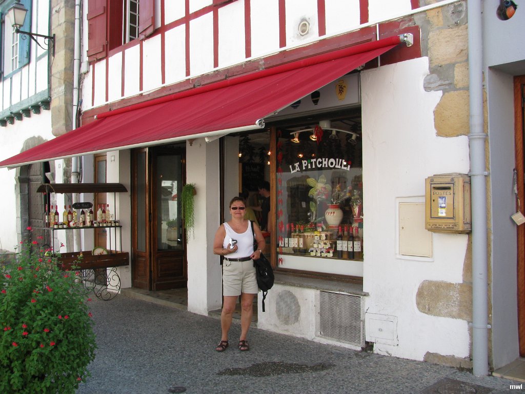 samedi, 30 mai 2009, 16 h 5 | Boutique la Pitchouli | Ville: Espelette | Pyrénées-Atlantiques | France | Ici on a acheté l'appéritif le Gratte-Cul. Le gratte-cul c'est le fruit de l'églantier. | GPS: 43°20'26.82" N | 1°26'56.68" W | ©Marcel Walter Landry | Fichier: IMG_8046.JPG