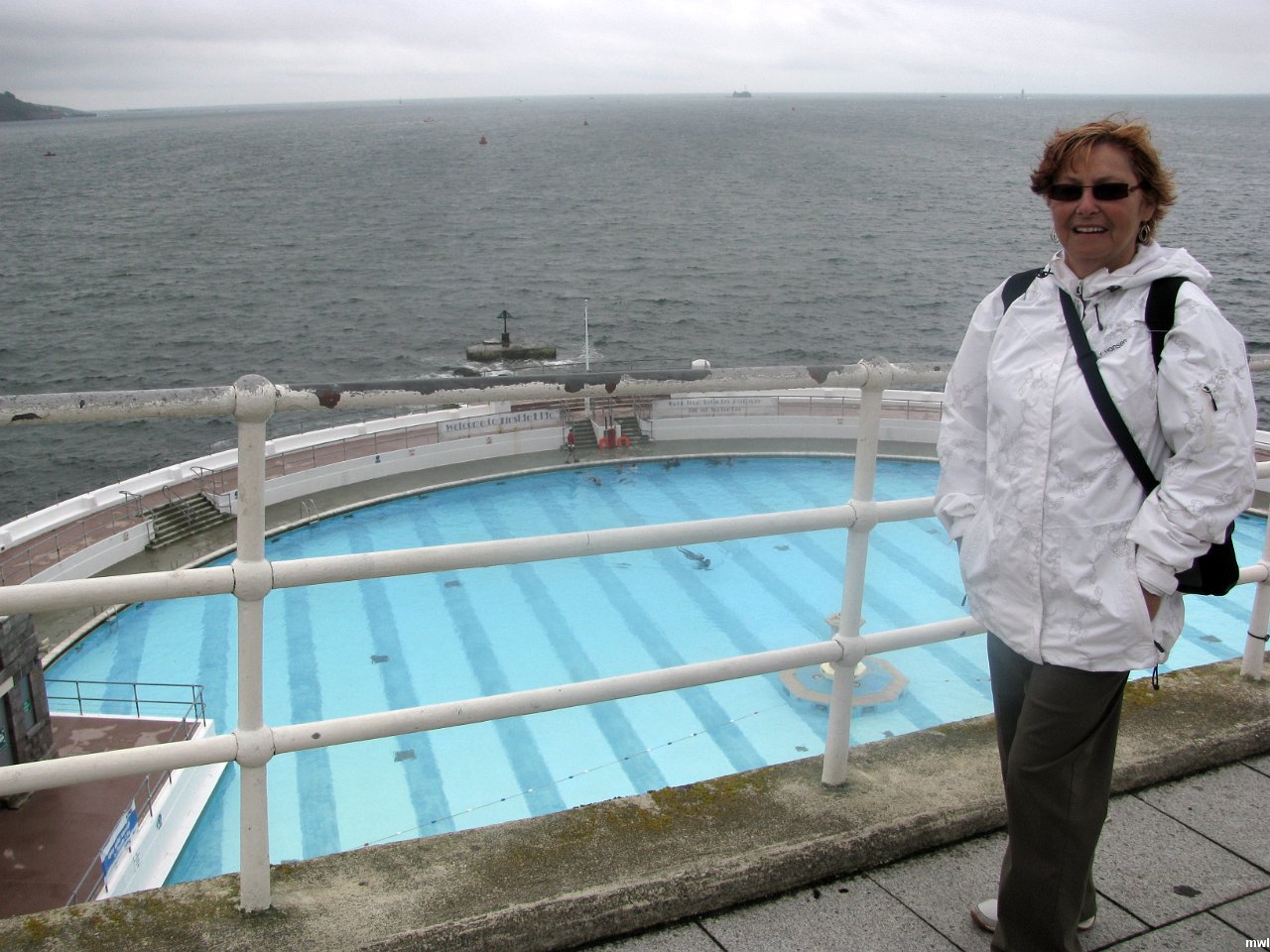 mardi, 5 juillet 2011, 10h38 | Tinside Lido Première station balnéaire | Ville: Plymouth | Devon | Angleterre | Tinside Pool is a unique 1935 Art Deco lido in the city of Plymouth in south-west England. It is sited beside Plymouth Sound and is overlooked by Plymouth Hoe and Smeaton's Tower. The lido was officially opened on 2 October 1935. A victim of declining popularity and neglect, the lido closed in 1992 but a vociferous local campaign led to a renovation, at a cost of 3.4 million pound, and Grade II Listed Building status in 1998. The facility re-opened to the public in 2005. | GPS: 50°21'48.92" N | 4°8'31.16" W | © Marcel Walter Landry | Fichier: IMG_7657.JPG