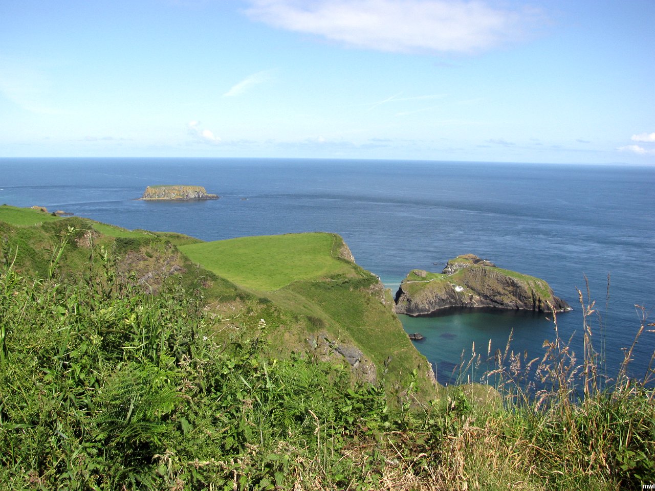 vendredi, 22 juillet 2011, 11h05 | Pont de corde Carrick-A-Rede vers l'ile Carrick | Ville: Carrick Island | Irlande du Nord | You'll make a photo stop at Carrick-A-Rede Rope Bridge, a rope suspension bridge that links the mainland to the tiny Carrick Island. The geology, flora and fauna have won Carrick-a-Rede recognition as an area of special scientific interest. | GPS: 55°14'3.65" N | 6°19'41.46" W | © Marcel Walter Landry | Fichier: IMG_8861.JPG