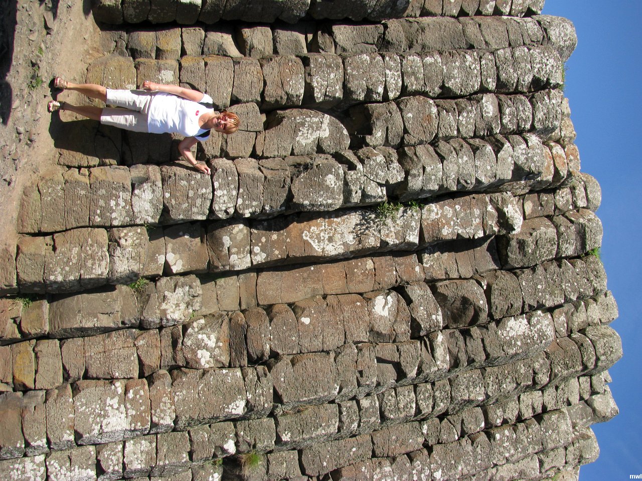 vendredi, 22 juillet 2011, 12h20 | Giants causeway - La Chaussée du Géant | Ville: Giants Causeway | Irlande du Nord | Giant's Causeway. Renowned for its polygonal columns of layered basalt, the Causeway is considered the Eighth Wonder of the World, and is the only World Heritage Site in Northern Ireland. According to myth, the giant Finn McCool used the basalt columns forming the causeway as stepping stones to travel from Ireland to Scotland to visit his lover, a Scots giantess. Scientists, however, believe the mainly hexagonal columns resulted from cooling lava flows. Since it was first documented in 1693, the Causeway Coast has been the subject of much controversy concerning the origins of the earth. | GPS: 55°14'24.23" N | 6°30'39.13" W | © Marcel Walter Landry | Fichier: IMG_8884.JPG