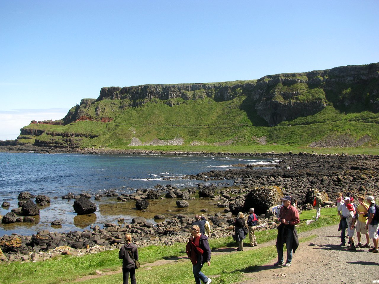 vendredi, 22 juillet 2011, 12h21 | Giants causeway - La Chaussée du Géant | Ville: Giants Causeway | Irlande du Nord | Giant's Causeway. Renowned for its polygonal columns of layered basalt, the Causeway is considered the Eighth Wonder of the World, and is the only World Heritage Site in Northern Ireland. According to myth, the giant Finn McCool used the basalt columns forming the causeway as stepping stones to travel from Ireland to Scotland to visit his lover, a Scots giantess. Scientists, however, believe the mainly hexagonal columns resulted from cooling lava flows. Since it was first documented in 1693, the Causeway Coast has been the subject of much controversy concerning the origins of the earth. | GPS: 55°14'24.22" N | 6°30'39.10" W | © Marcel Walter Landry | Fichier: IMG_8885.JPG