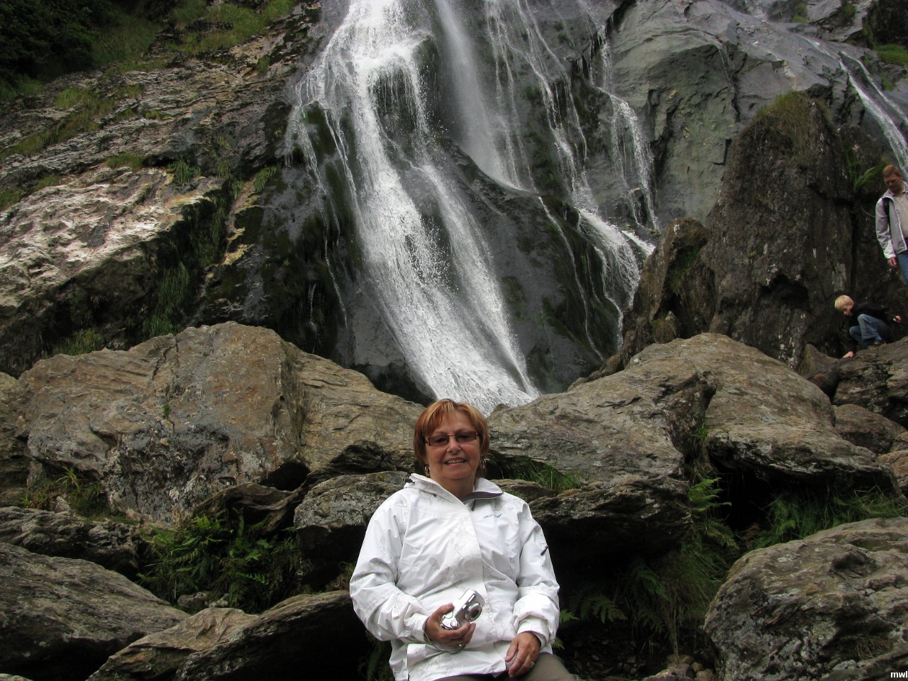 lundi, 25 juillet 2011, 11h26 | Powerscourt Waterfall | Ville: Powerscourt Estate | Irlande | Powerscourt Waterfall - Glaciers formed the waterfall over 10,000 years ago. The brown water of the Dargle - colored by local marshes and bogs - falls from 400 feet and gathers into a peaceful stream that flows through the beautiful Dargle Valley. | GPS: 53°8'45.55" N | 6°12'38.90" W | © Marcel Walter Landry | Fichier: IMG_9162.JPG