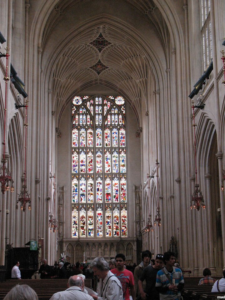 mercredi, 13 juillet 2011, 12h41 | L'abbaye de Bath Abbey | Ville: Stonehenge Bath Startford-upon-A | Angleterre | En 43 av. J.-C, les Romains fondèrent la ville pour en faire un lieu thermal et s'appelait en latin Aquae Sulis ("les eaux de Sulis"). Cependant, la tradition orale semble suggérer que Bath était connue avant cette date. Ils construisirent des bains et un temple dans les collines aux alentours de la ville, dans la vallée de l'Avon autour de sources chaudes. Edgar d'Angleterre fut proclamé roi à l'abbaye de Bath en 973. Bien plus tard, la ville devint populaire en tant que station thermale pendant l'époque georgienne, qui conduit à une importante expansion laissant un incroyable héritage architectural fabriqué avec la pierre de la région. Source: Wiki. | GPS: 51°22'53.14" N | 2°21'34.06" W | © Cécile Brousseau | Fichier: IMG_4686.JPG