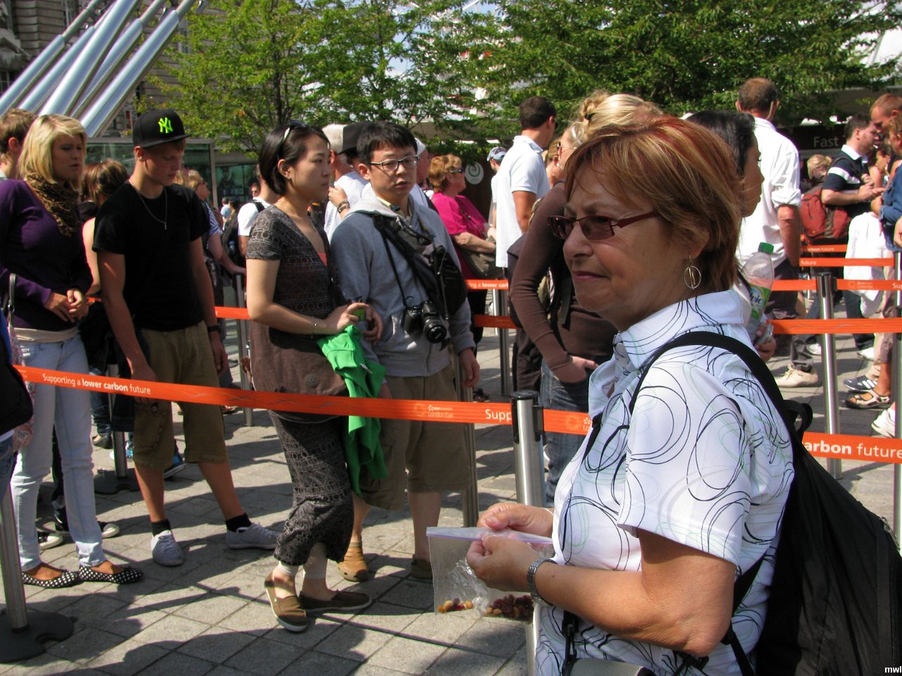 dimanche, 10 juillet 2011, 11h07 | London's Eye | Ville: Londres | Angleterre | En ligne pour embarquer dans la roue mais elle tombera en panne avant notre tour. On refera ça dimanche. | GPS: 51°30'12.08" N | 0°7'6.59" W | © Marcel Walter Landry | Fichier: IMG_7882.JPG