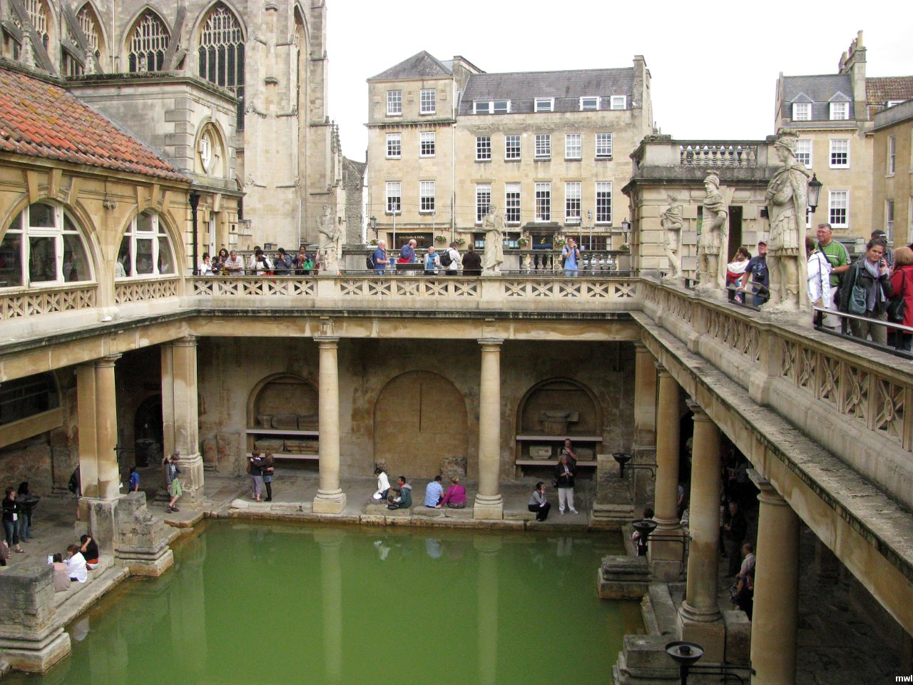 mercredi, 13 juillet 2011, 12h59 | Les bains romains de Bath | Ville: Stonehenge Bath Startford-upon-A | Angleterre | En 43 av. J.-C, les Romains fondèrent la ville pour en faire un lieu thermal et s'appelait en latin Aquae Sulis ("les eaux de Sulis"). Cependant, la tradition orale semble suggérer que Bath était connue avant cette date. Ils construisirent des bains et un temple dans les collines aux alentours de la ville, dans la vallée de l'Avon autour de sources chaudes. Edgar d'Angleterre fut proclamé roi à l'abbaye de Bath en 973. Bien plus tard, la ville devint populaire en tant que station thermale pendant l'époque georgienne, qui conduit à une importante expansion laissant un incroyable héritage architectural fabriqué avec la pierre de la région. Source: Wiki. | GPS: 51°22'50.98" N | 2°21'33.78" W | © Marcel Walter Landry | Fichier: IMG_8159.JPG