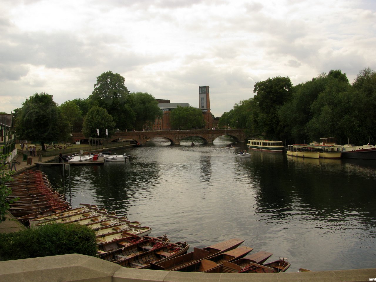 mercredi, 13 juillet 2011, 16h07 | La rivière Avon | Ville: Startford-upon-Avon | Angleterre | Stratford-upon-Avon est une ville du centre de l'Angleterre où William Shakespeare est né en 1564. Il y revint en 1611, assez riche et célèbre pour s'offrir des armoiries et passa les dernières années de sa vie dans sa maison de New Place. Décédé dans cette ville en 1616. | GPS: 52°11'27.96" N | 1°41'58.15" W | © Marcel Walter Landry | Fichier: IMG_8191.JPG