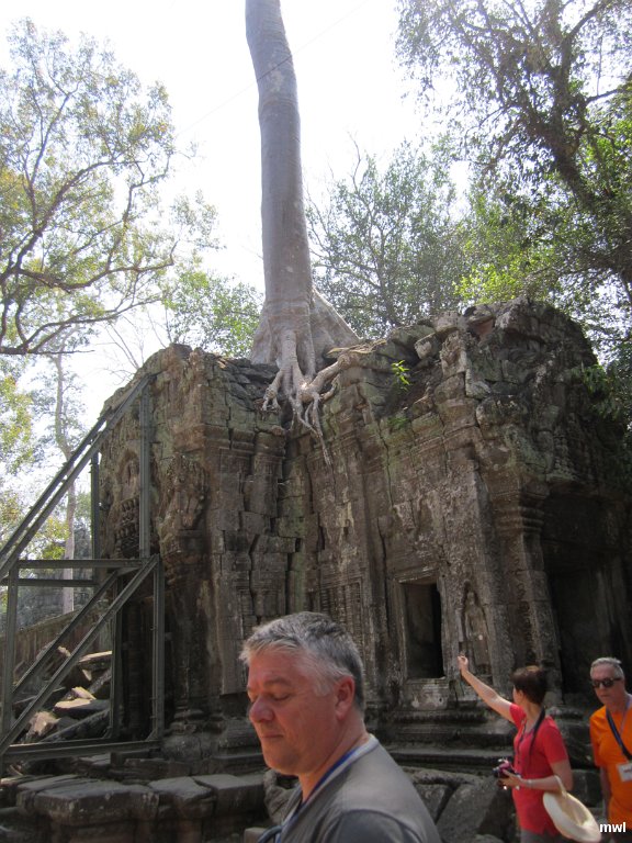 mardi, 9 février 2016, 11 h 10 | Ville: Siem Reap | Angkor | Cambodge | Ta Prohm qui fût le plus vaste temple dAngkor, aujourdhui livré à la jungle. Les conservateurs lont laissé intact, permettant ainsi aux visiteurs actuels den ressentir le mystère. Situé un kilomètre à l'est d'Angkor Thom, sur le bord sud du baray oriental, il a été construit sous le règne de Jayavarman VII comme monastère et université bouddhique Mahayana sous le nom Rajavihara (le monastère du roi). Jayavarman VII est le seul roi khmer à avoir édifié deux grands temples. Le premier des deux, Ta Prohm fut consacré en 1186 et dédié à la famille du roi : l'idole principale (Prajnaparamita, la personnification de la sagesse) a pris modèle sur sa mère, tandis que les deux temples satellites de la troisième enceinte étaient consacrés l'un à son guru (nord) et l'autre à son frère aîné (sud). Wikipédia. | GPS: 13°26'6.83" N | 103°53'19.46" E | © Cécile Brousseau | Fichier: CB_IMG_0619.JPG