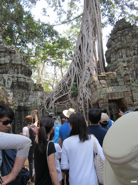 mardi, 9 février 2016, 11 h 35 | Ville: Siem Reap | Angkor | Cambodge | Ta Prohm qui fût le plus vaste temple dAngkor, aujourdhui livré à la jungle. Les conservateurs lont laissé intact, permettant ainsi aux visiteurs actuels den ressentir le mystère. Situé un kilomètre à l'est d'Angkor Thom, sur le bord sud du baray oriental, il a été construit sous le règne de Jayavarman VII comme monastère et université bouddhique Mahayana sous le nom Rajavihara (le monastère du roi). Jayavarman VII est le seul roi khmer à avoir édifié deux grands temples. Le premier des deux, Ta Prohm fut consacré en 1186 et dédié à la famille du roi : l'idole principale (Prajnaparamita, la personnification de la sagesse) a pris modèle sur sa mère, tandis que les deux temples satellites de la troisième enceinte étaient consacrés l'un à son guru (nord) et l'autre à son frère aîné (sud). Wikipédia. | GPS: 13°26'5.36" N | 103°53'21.31" E | © Cécile Brousseau | Fichier: CB_IMG_0627.JPG