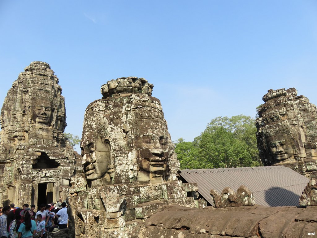 mardi, 9 février 2016, 9 h 42 | Prasat Bayon | Ville: Siem Reap | Angkor | Cambodge | Angkor Thom est la cité royale construite par Jayavarman VII (qui régna probablement de 1181 à 1220), roi bouddhiste de l'Empire khmer, à la fin du xiie siècle et au début du xiiie siècle, après la conquête et la destruction d'Angkor par les Chams. Son nom actuel, Angkor Thom, signifie - la grande cité - ; son nom sanskrit était Mahanagara. Elle est le témoin de la grandeur de l'empire. Wikipédia. | GPS: 13°26'28.78" N | 103°51'32.61" E | © Marcel Walter Landry | Fichier: IMG_2593.JPG