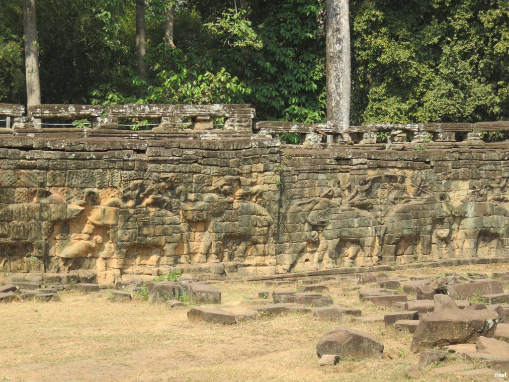 mardi, 9 février 2016, 10 h 16 | Terrasse des éléphants | Ville: Siem Reap | Angkor | Cambodge | Angkor Thom est la cité royale construite par Jayavarman VII (qui régna probablement de 1181 à 1220), roi bouddhiste de l'Empire khmer, à la fin du xiie siècle et au début du xiiie siècle, après la conquête et la destruction d'Angkor par les Chams. Son nom actuel, Angkor Thom, signifie - la grande cité - ; son nom sanskrit était Mahanagara. Elle est le témoin de la grandeur de l'empire. Wikipédia. | GPS: 13°26'40.36" N | 103°51'32.78" E | © Marcel Walter Landry | Fichier: IMG_2600.JPG
