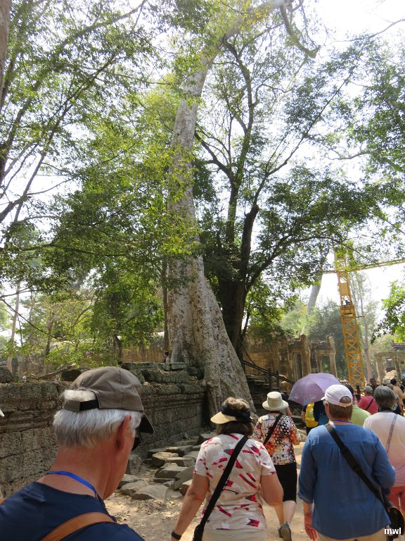 mardi, 9 février 2016, 11 h 15 | Ville: Siem Reap | Angkor | Cambodge | Ta Prohm qui fût le plus vaste temple dAngkor, aujourdhui livré à la jungle. Les conservateurs lont laissé intact, permettant ainsi aux visiteurs actuels den ressentir le mystère. Situé un kilomètre à l'est d'Angkor Thom, sur le bord sud du baray oriental, il a été construit sous le règne de Jayavarman VII comme monastère et université bouddhique Mahayana sous le nom Rajavihara (le monastère du roi). Jayavarman VII est le seul roi khmer à avoir édifié deux grands temples. Le premier des deux, Ta Prohm fut consacré en 1186 et dédié à la famille du roi : l'idole principale (Prajnaparamita, la personnification de la sagesse) a pris modèle sur sa mère, tandis que les deux temples satellites de la troisième enceinte étaient consacrés l'un à son guru (nord) et l'autre à son frère aîné (sud). Wikipédia. | GPS: 13°26'6.74" N | 103°53'23.77" E | © Marcel Walter Landry | Fichier: IMG_2624.JPG