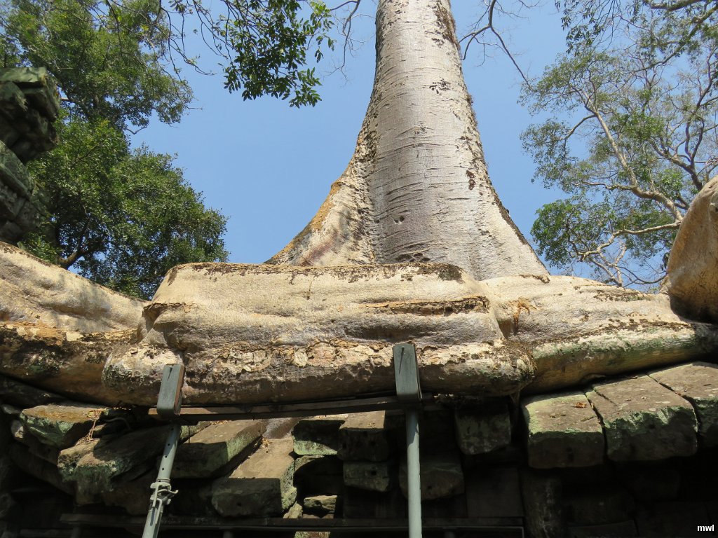 mardi, 9 février 2016, 11 h 25 | Ville: Siem Reap | Angkor | Cambodge | Ta Prohm qui fût le plus vaste temple dAngkor, aujourdhui livré à la jungle. Les conservateurs lont laissé intact, permettant ainsi aux visiteurs actuels den ressentir le mystère. Situé un kilomètre à l'est d'Angkor Thom, sur le bord sud du baray oriental, il a été construit sous le règne de Jayavarman VII comme monastère et université bouddhique Mahayana sous le nom Rajavihara (le monastère du roi). Jayavarman VII est le seul roi khmer à avoir édifié deux grands temples. Le premier des deux, Ta Prohm fut consacré en 1186 et dédié à la famille du roi : l'idole principale (Prajnaparamita, la personnification de la sagesse) a pris modèle sur sa mère, tandis que les deux temples satellites de la troisième enceinte étaient consacrés l'un à son guru (nord) et l'autre à son frère aîné (sud). Wikipédia. | GPS: 13°26'5.74" N | 103°53'23.32" E | © Marcel Walter Landry | Fichier: IMG_2626.JPG