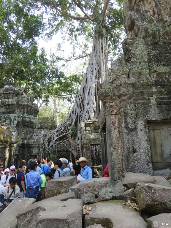mardi, 9 février 2016, 11 h 36 | Ville: Siem Reap | Angkor | Cambodge | Ta Prohm qui fût le plus vaste temple dAngkor, aujourdhui livré à la jungle. Les conservateurs lont laissé intact, permettant ainsi aux visiteurs actuels den ressentir le mystère. Situé un kilomètre à l'est d'Angkor Thom, sur le bord sud du baray oriental, il a été construit sous le règne de Jayavarman VII comme monastère et université bouddhique Mahayana sous le nom Rajavihara (le monastère du roi). Jayavarman VII est le seul roi khmer à avoir édifié deux grands temples. Le premier des deux, Ta Prohm fut consacré en 1186 et dédié à la famille du roi : l'idole principale (Prajnaparamita, la personnification de la sagesse) a pris modèle sur sa mère, tandis que les deux temples satellites de la troisième enceinte étaient consacrés l'un à son guru (nord) et l'autre à son frère aîné (sud). Wikipédia. | GPS: 13°26'5.52" N | 103°53'21.03" E | © Marcel Walter Landry | Fichier: IMG_2633.JPG