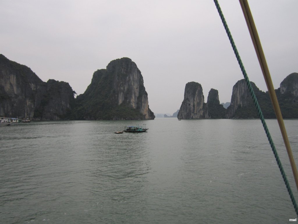 lundi, 25 janvier 2016, 8 h 29 | Ville: Baie de Ha Long | Vietnam | La particularité de la baie est sa multitude de pitons rocheux. Il y a 1 969 îles et îlots rocheux, comportant nombre de criques. Certains îlots sont creusés de grottes dont les plus célèbres sont la « grotte de la Surprise » et la « grotte des Merveilles ». D'autres grottes mènent à des lacs intérieurs. L'ensemble compose le plus grand karst marin du monde. Elle possède 120 kilomètres de côte. Ses 1 969 îles karstiques lui ont valu d'être inscrite sur la liste du Patrimoine mondial de l'UNESCO en 1994. Souce Wikipédia. | © Cécile Brousseau | Fichier: CB_IMG_0195.JPG