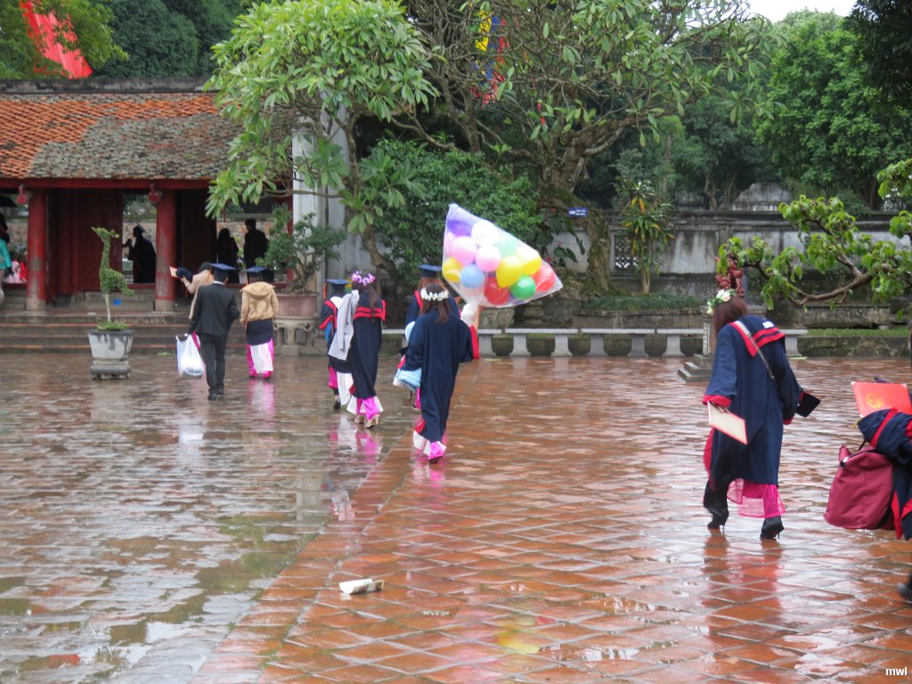 samedi, 23 janvier 2016, 11 h 12 | Les jeunes viennent célébrer leur graduation ici. | Ville: Hanoi | Vietnam | Construit en 1070 et dédié à Confucius, cest ici que fut fondée la première université vietnamienne destinée à l'éducation des enfants de la noblesse et des familles riches. | GPS: 21°1'45.50" N | 105°50'10.27" E | © Marcel Walter Landry | Fichier: IMG_0722.JPG
