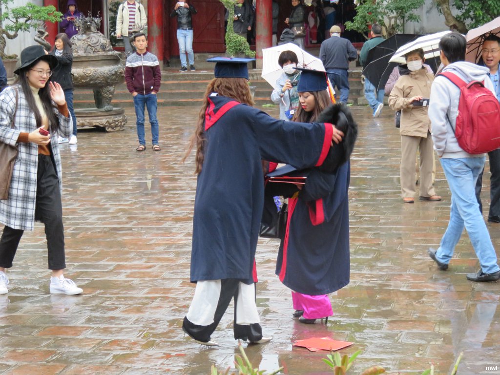 samedi, 23 janvier 2016, 11 h 15 | Les jeunes viennent célébrer leur graduation ici. | Ville: Hanoi | Vietnam | Construit en 1070 et dédié à Confucius, cest ici que fut fondée la première université vietnamienne destinée à l'éducation des enfants de la noblesse et des familles riches. | GPS: 21°1'45.02" N | 105°50'9.65" E | © Marcel Walter Landry | Fichier: IMG_0724.JPG