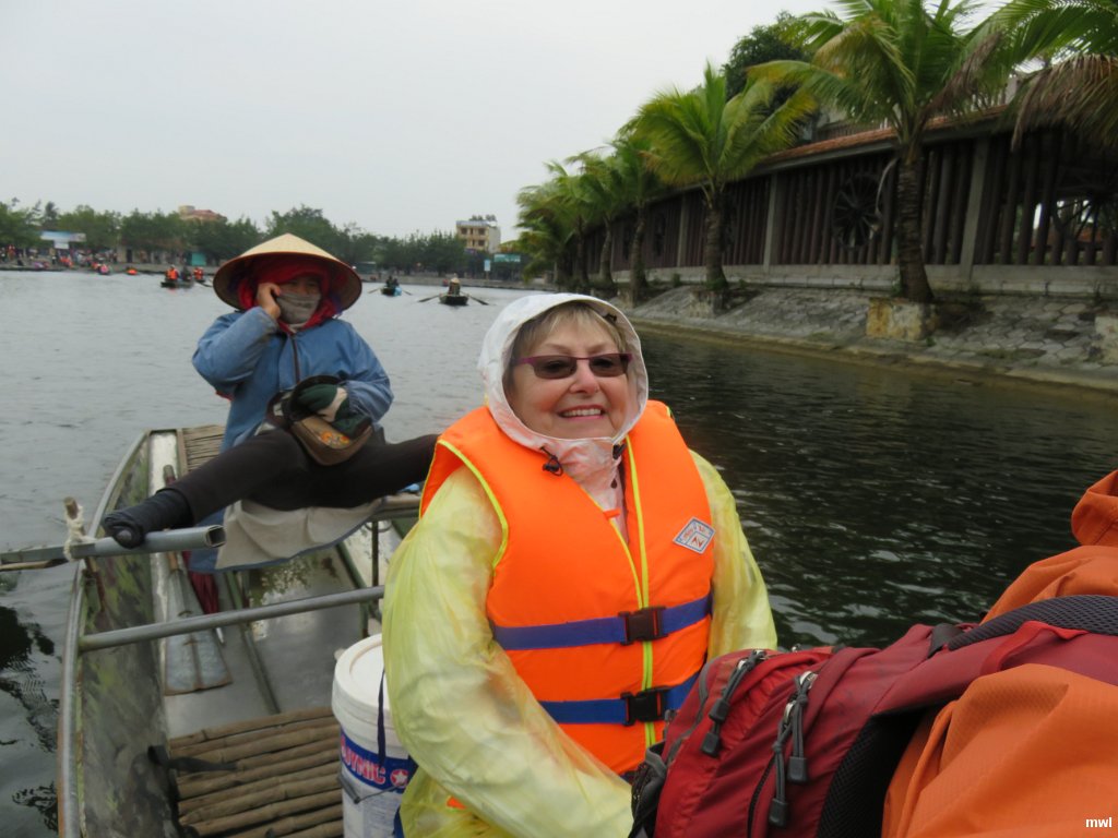 dimanche, 24 janvier 2016, 10 h 47 | Notre rameuse | Ville: Tam Coc, Ninh Bình | Vietnam | À bord d'une chaloupe avec une rameuse qui rame avec ses pieds, nous traversons un canal bordé de rizières et des grottes qui offrent des paysages de toute beauté. | GPS: 20°13'2.17" N | 105°56'10.63" E | © Marcel Walter Landry | Fichier: IMG_0823.JPG