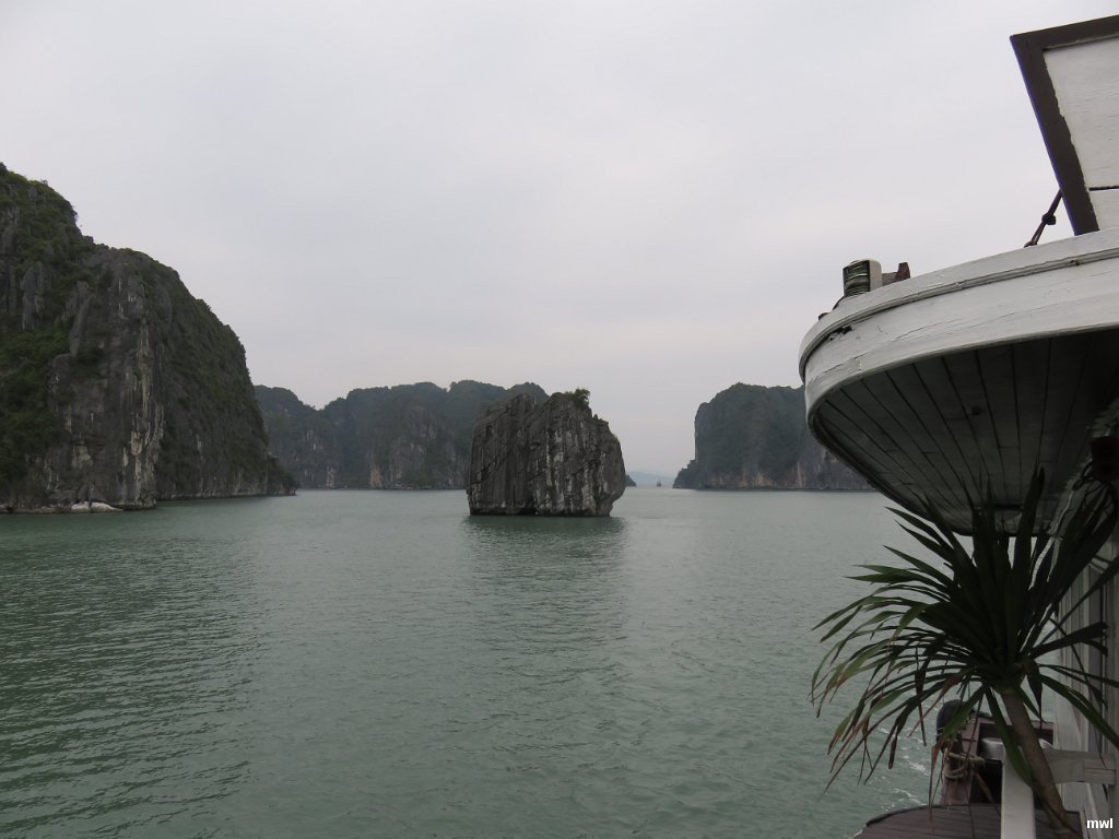 lundi, 25 janvier 2016, 8 h 32 | Ville: Baie de Ha Long | Vietnam | La particularité de la baie est sa multitude de pitons rocheux. Il y a 1 969 îles et îlots rocheux, comportant nombre de criques. Certains îlots sont creusés de grottes dont les plus célèbres sont la « grotte de la Surprise » et la « grotte des Merveilles ». D'autres grottes mènent à des lacs intérieurs. L'ensemble compose le plus grand karst marin du monde. Elle possède 120 kilomètres de côte. Ses 1 969 îles karstiques lui ont valu d'être inscrite sur la liste du Patrimoine mondial de l'UNESCO en 1994. Souce Wikipédia. | © Marcel Walter Landry | Fichier: IMG_0888.JPG