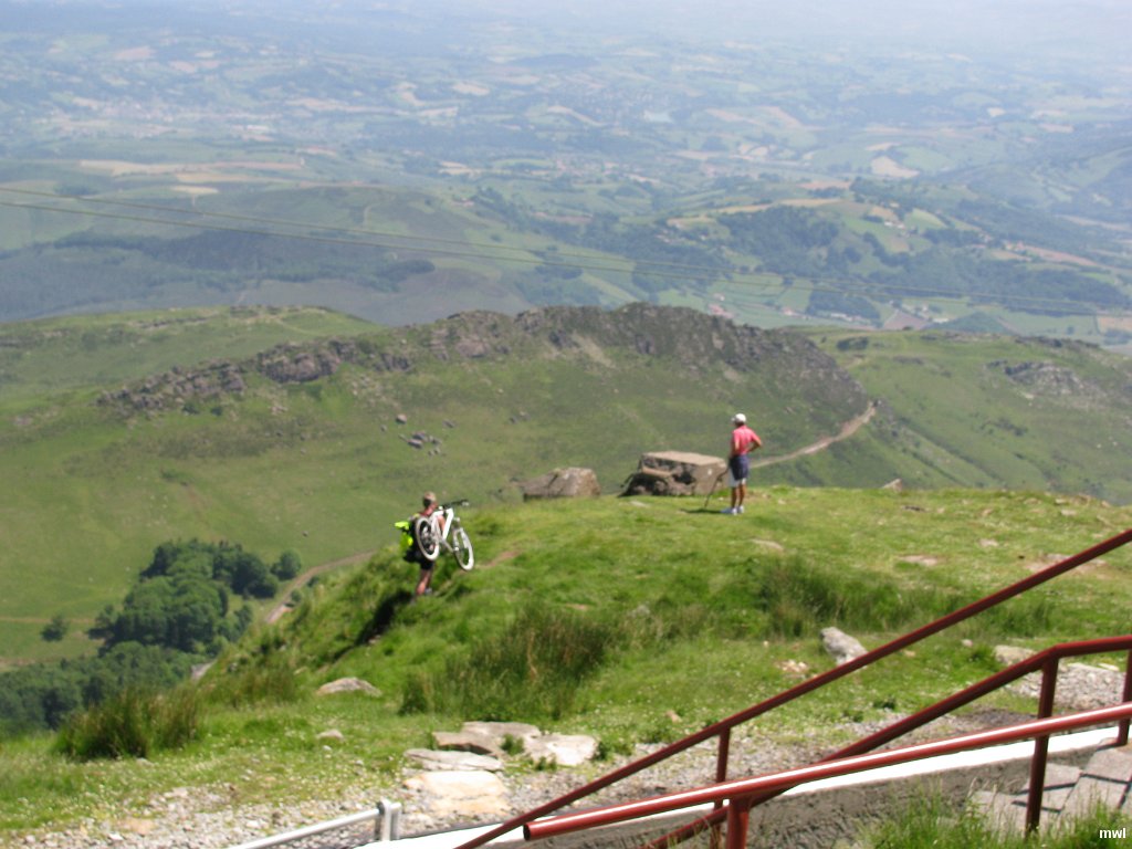 samedi, 30 mai 2009, 12 h 26 | Un athlète - il a monté son vélo à pied | Ville: Sare | Pyrénées-Atlantiques | France | Il est l'un des rares Chemin de fer à crémaillère de France encore en service. Sur une ligne à voie métrique, inaugurée en 1924, roule sur des rames d'époque à traction électrique. La ligne relie le col de Saint-Ignace, à 10 km environ de Saint Jean de Luz entre Ascain et Sare. au sommet de la Rhune à 905 mètres d'altitude, sur la frontière franco-espagnole. | GPS: 43°18'34.06" N | 1°38'5.55" W | ©Marcel Walter Landry | Fichier: IMG_8001.JPG