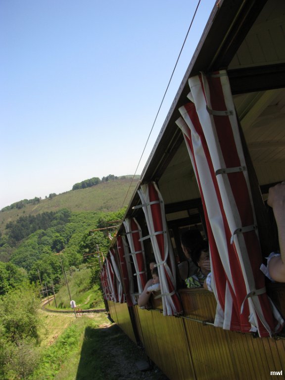 samedi, 30 mai 2009, 13 h 7 | Ville: Sare | Pyrénées-Atlantiques | France | Il est l'un des rares Chemin de fer à crémaillère de France encore en service. Sur une ligne à voie métrique, inaugurée en 1924, roule sur des rames d'époque à traction électrique. La ligne relie le col de Saint-Ignace, à 10 km environ de Saint Jean de Luz entre Ascain et Sare. au sommet de la Rhune à 905 mètres d'altitude, sur la frontière franco-espagnole. | GPS: 43°19'26.35" N | 1°36'14.21" W | ©Marcel Walter Landry | Fichier: IMG_8022.JPG
