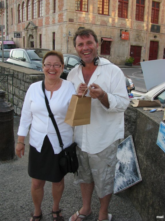 dimanche, 31 mai 2009, 20 h 18 | Peintre Bruno Valota | Ville: Saint-Jean-de-Luz | Pyrénées-Atlantiques | France | Peintre Bruno Valota. Il a peint un bateau de pêcheur, un thonnier semblable à ceux du port de Saint-Jean-de-Luz. | GPS: 43°23'15.74" N | 1°39'54.32" W | ©Marcel Walter Landry | Fichier: IMG_8111.JPG