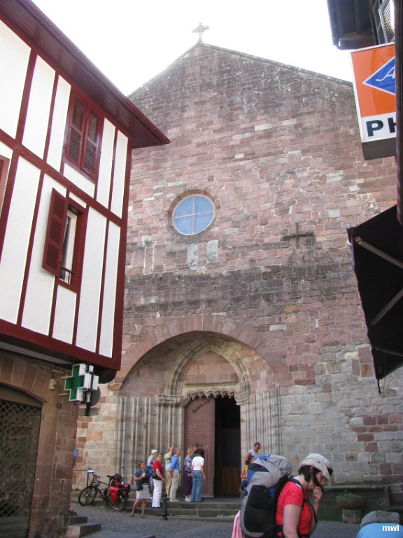 lundi, 1 juin 2009, 10 h 25 | Église de St-Jean-Pied-de-Port | Ville: St-Jean-Pied-de-Port | Pyrénées-Atlantiques | France | Village du moyen-âge. Lieu préviligié pour un départ de la marche vers St-Jacques de Compostelle. | GPS: 43°9'45.54" N | 1°14'13.42" W | ©Marcel Walter Landry | Fichier: IMG_8141.JPG
