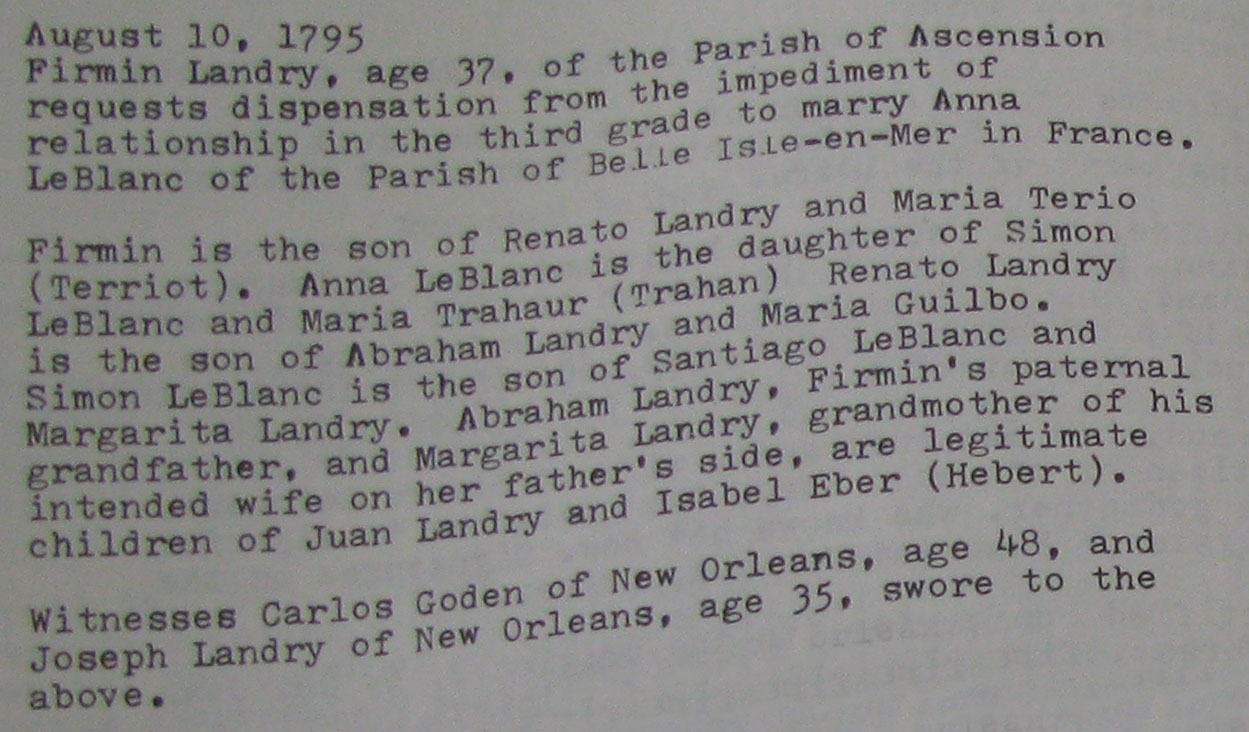 René le cadet Landry et Marie Bernard. Mais malgré ces erreurs la dispense