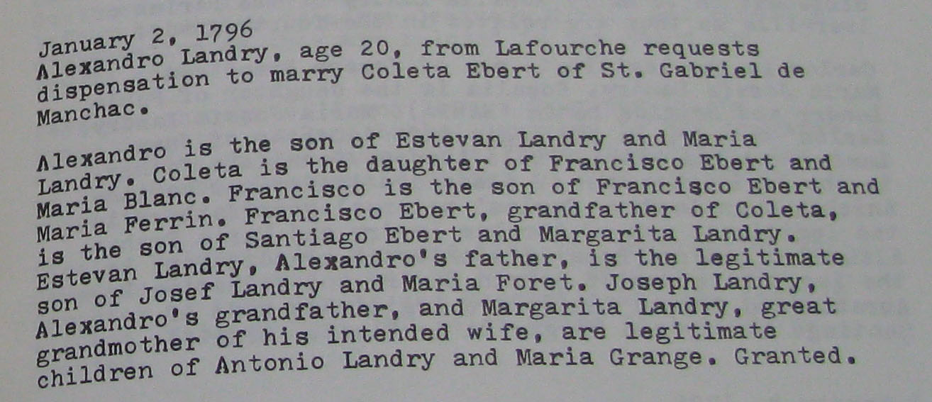 | Shirley Chaisson Bourquard, Marriage dispensations in the