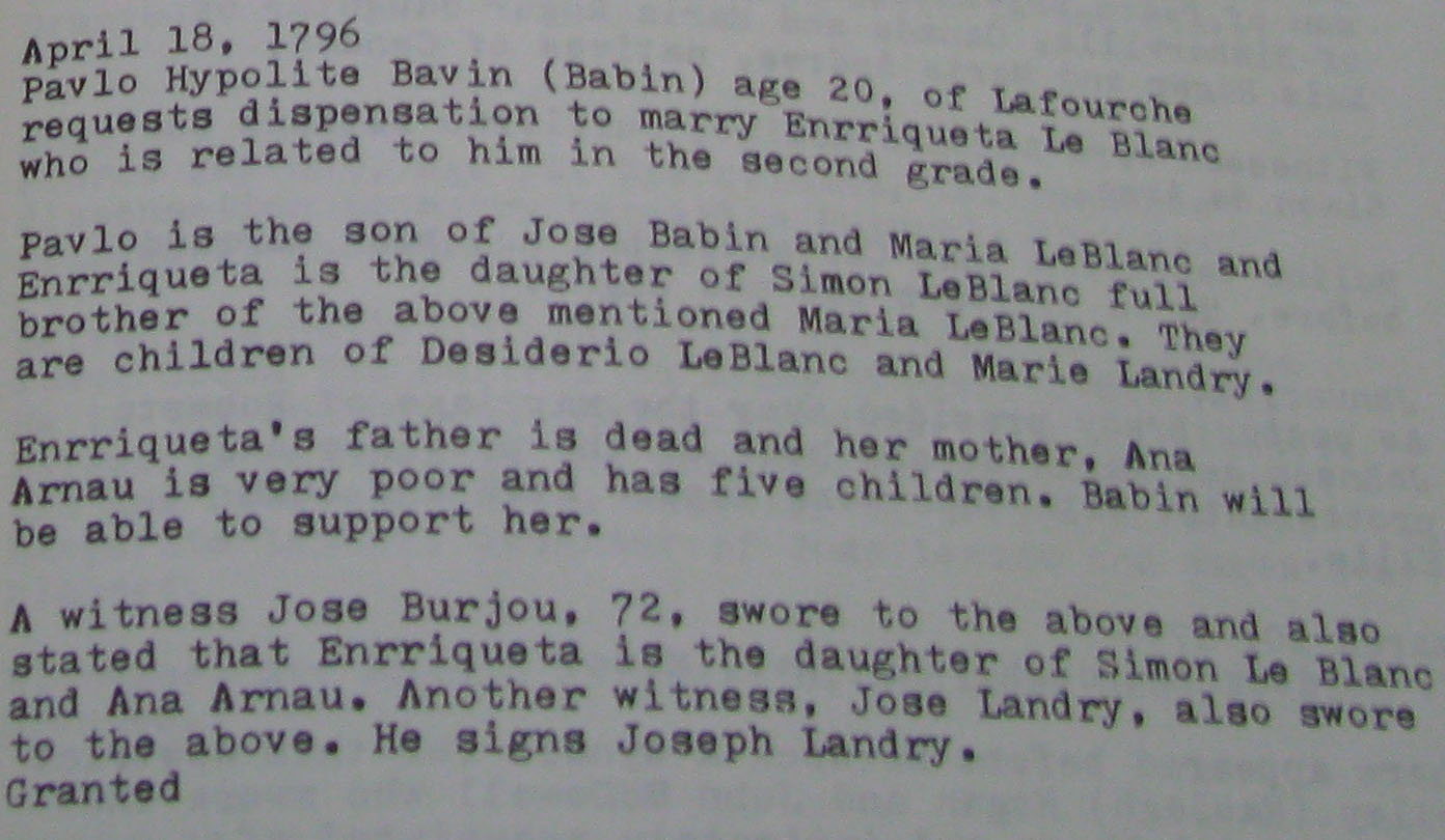 | Shirley Chaisson Bourquard, Marriage dispensations in the